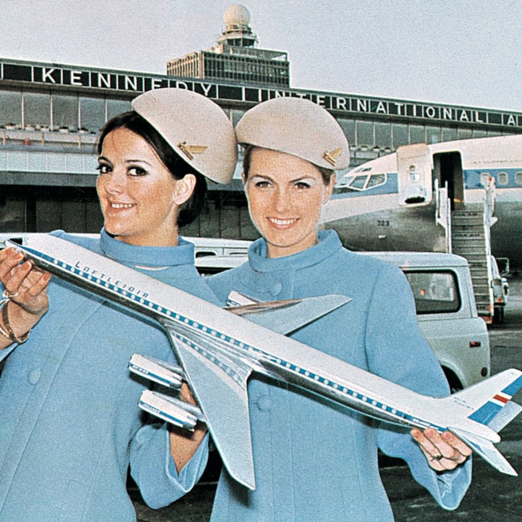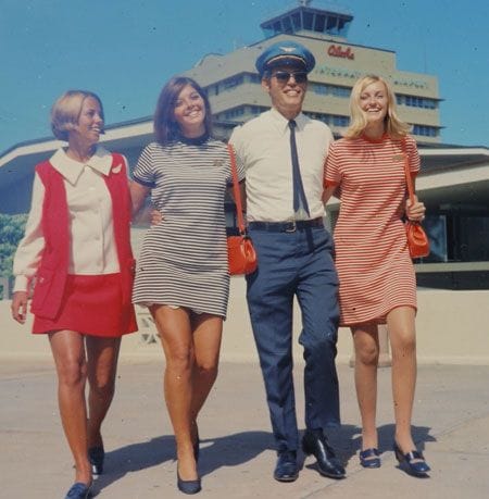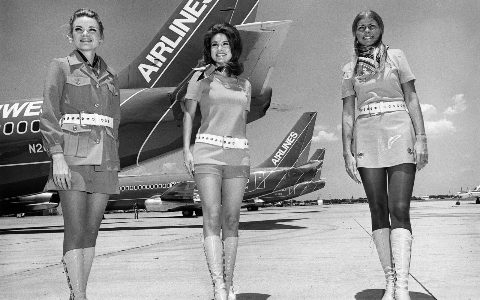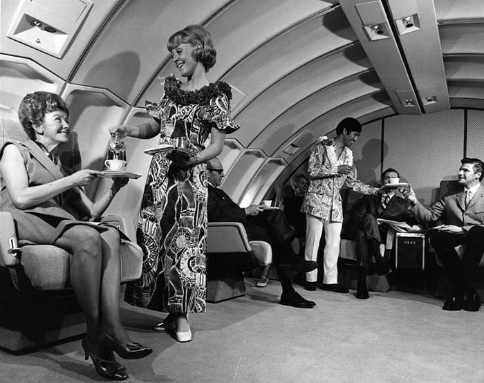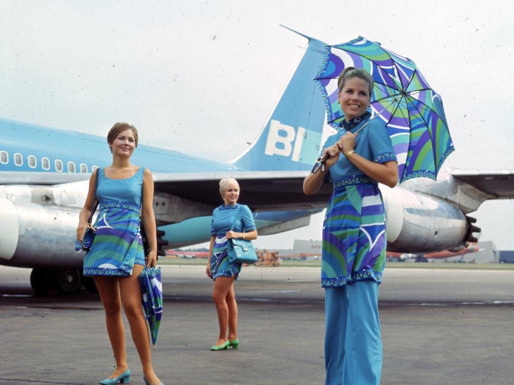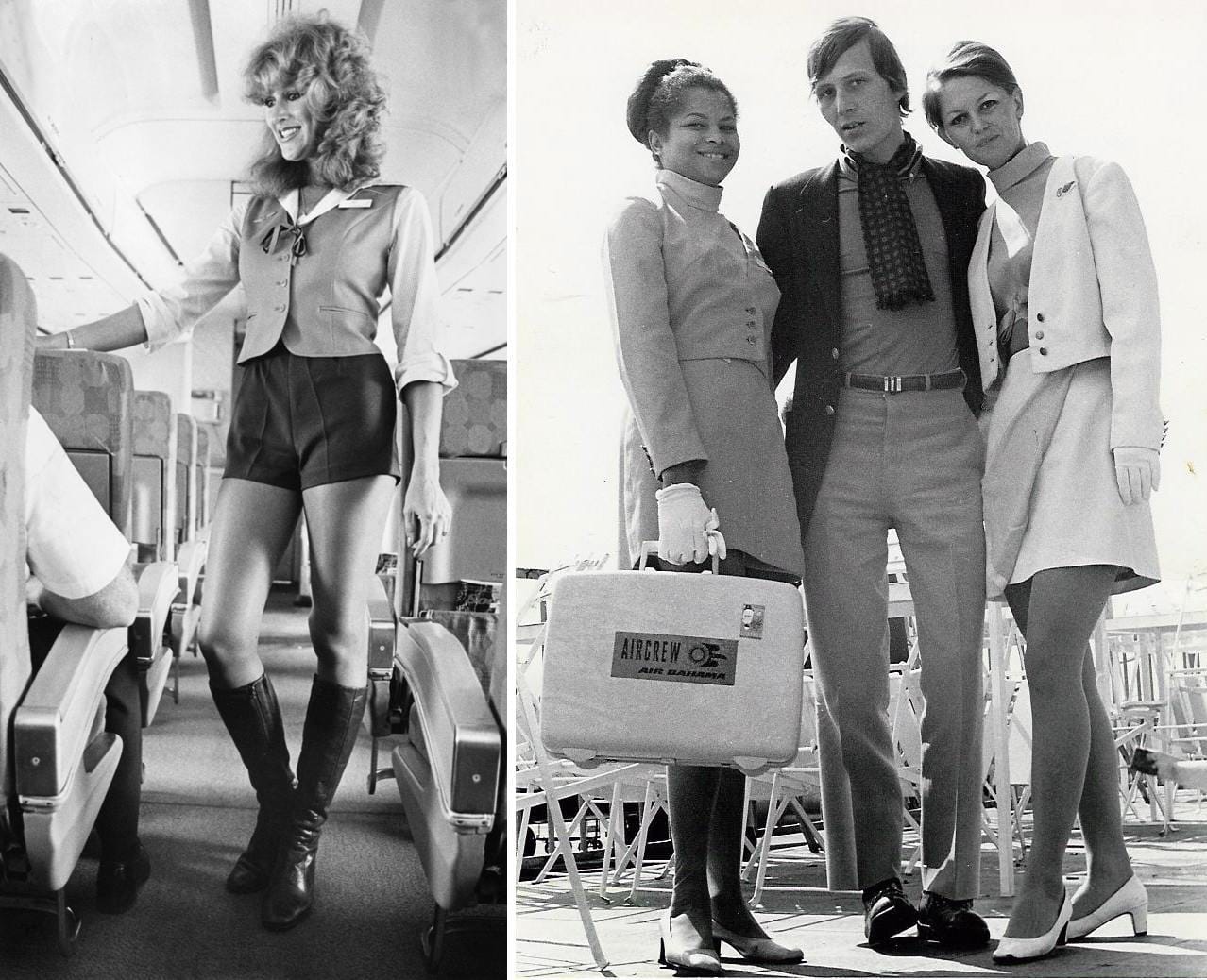 Before sweatpants and neck pillows took over air travel, this was the era of sky-high fashion. And yes, it was a lot of polyester. A lot.