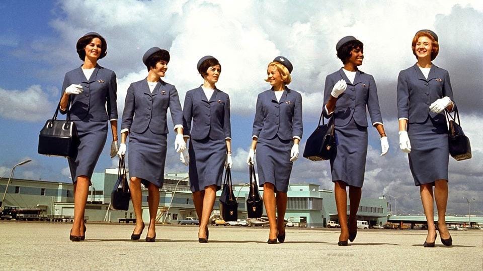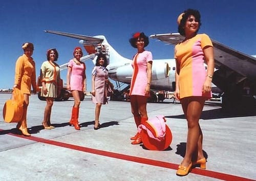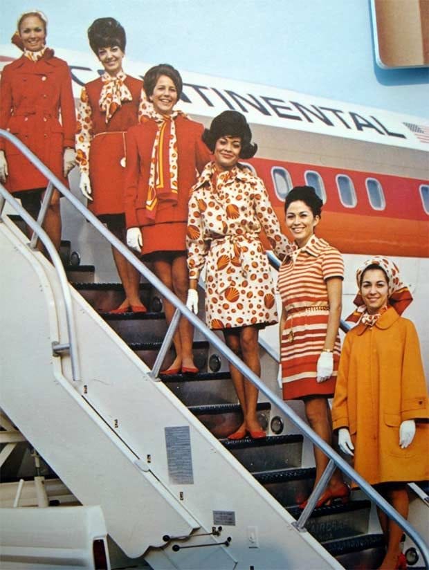 TravelVintage flight attendant style from the 60s through to the 80s. Think miniskirts, jumpsuits, and more polyester than you thought possible.