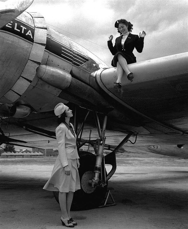 Fun fact: some airlines in the 70s had attendants wear hot pants and go-go boots (because nothing says “safety regulations” like glitter and polyester). Others leaned into space-age vibes with silver fabric and oversized hats, like they were auditioning for Star Trek.